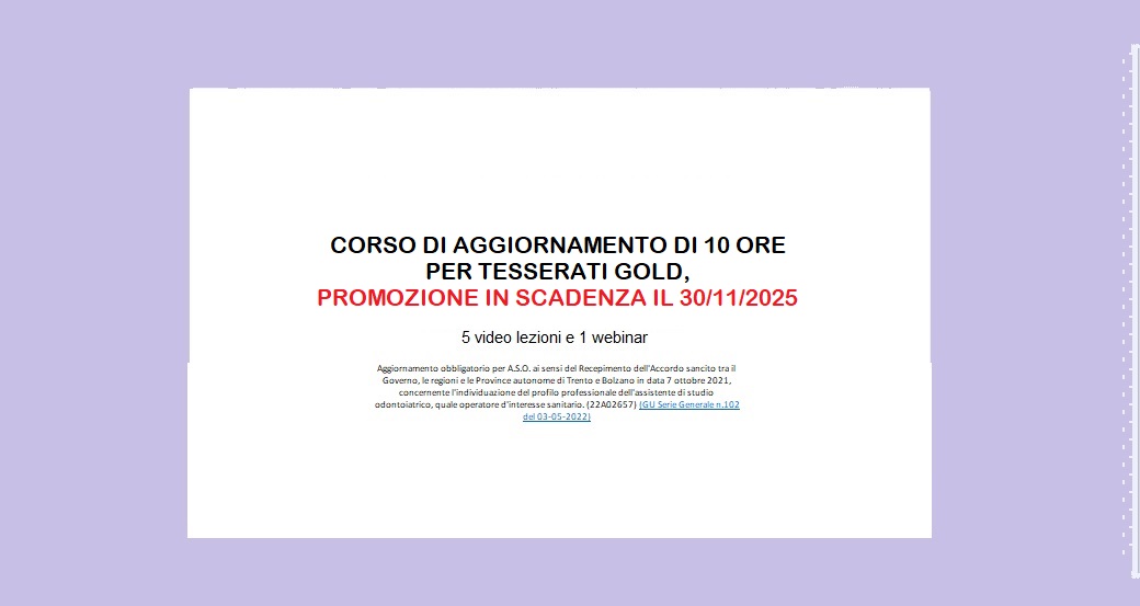 CORSO DI AGGIORNAMENTO OBBLIGATORIO 10 ORE 2025 in VIDEOLEZIONI - per tesserati SILVER - ACQUISTABILE FINO AL 1/12/2025